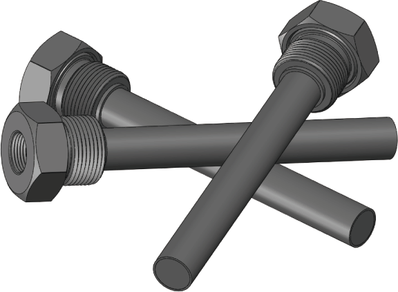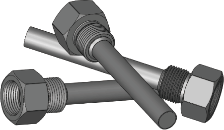 Гильза ГЦР.123-М33х2-20-250-25 – гильза цилиндрическая резьбовая, конструктивное исполнение 123, с монтажной резьбой М33х2, диаметр 20 мм, монтажная длина 250 мм, рассчитана на условное давление 25 МПа;