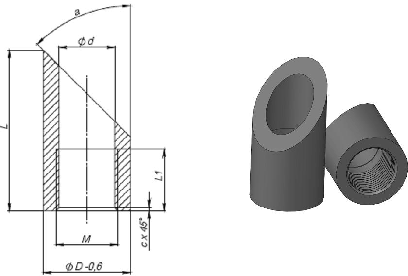 Бобышки предназначены для монтажа защитных гильз с монтажным резьбовым соединением с установленным термопреобразователем в трубопровод под углом.